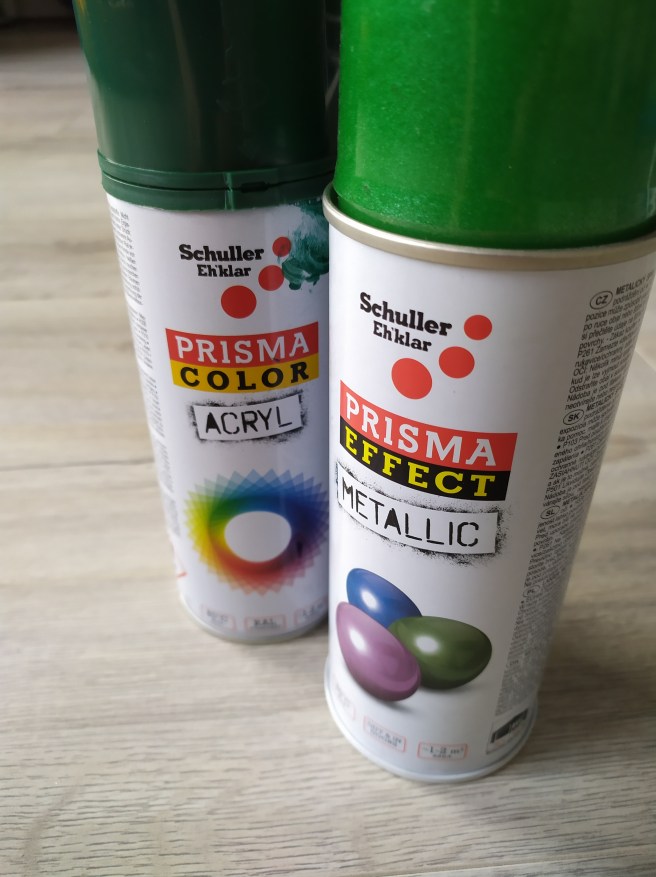 Mikor összeállítottam, kétféle árnyalatú zöld festékszóróval fújtam le: először a világosabb zölddel, majd a sötétzölddel. Ezzel természetesebb hatása lett – már amennyire egy papírfenyő lehet természetes… Íme, a fázisok és az eredmény: